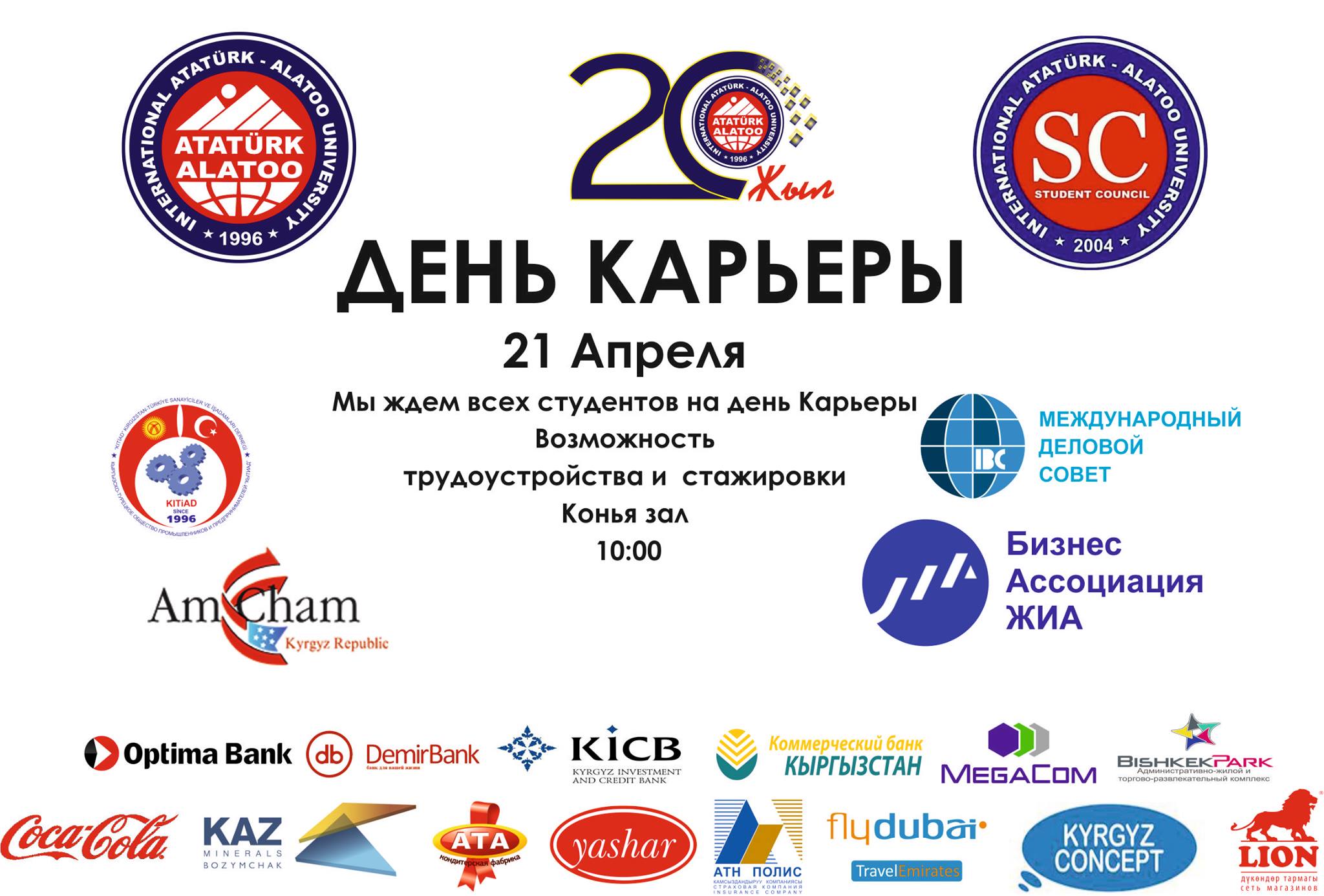 Student Council of IAAU is organizing Career Day on 21st of April 2016. Representatives of leading companies will answer all your questions concerning their companies, job and internship offers and their stages of recruitment. The company representatives will be waiting for you the whole day and you will have the chance to talk directly to them.